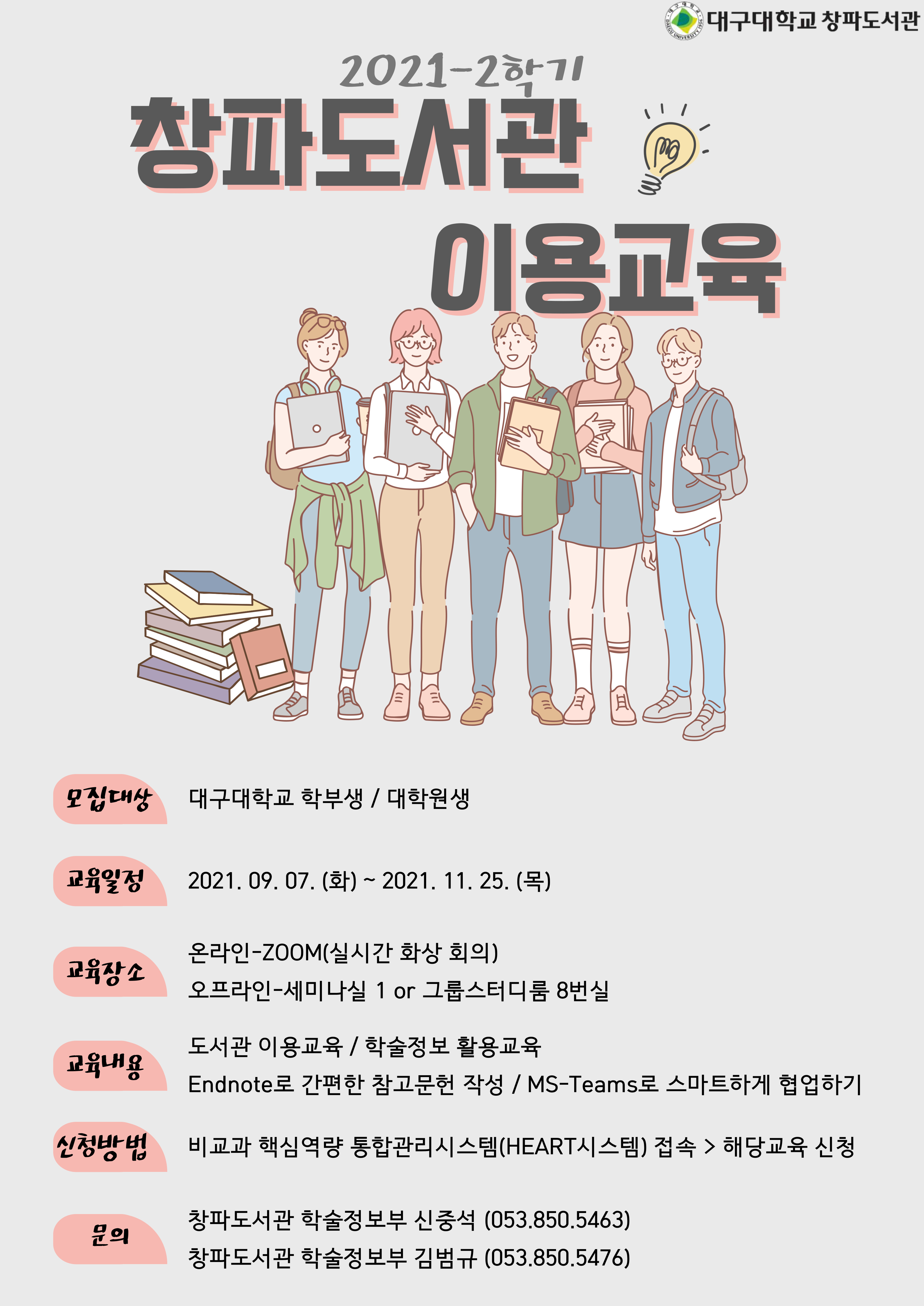 위 호와 관련하여 2021학년도 2학기 도서관 이용 교육을 다음과 같이 진행하오니 많은 참여