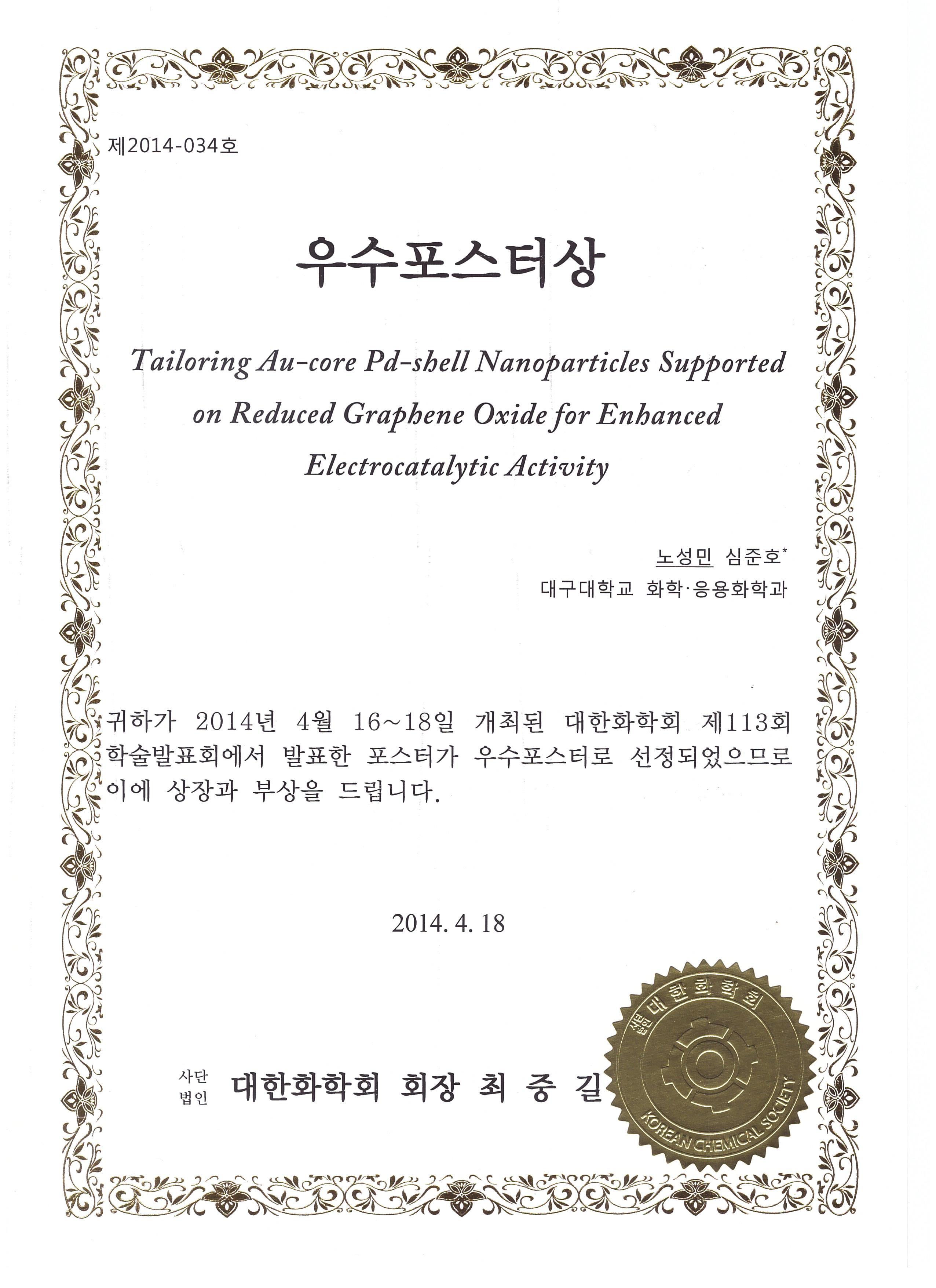 2014 노성민 학생, 대한화학회 우수논문(포스터) 수상